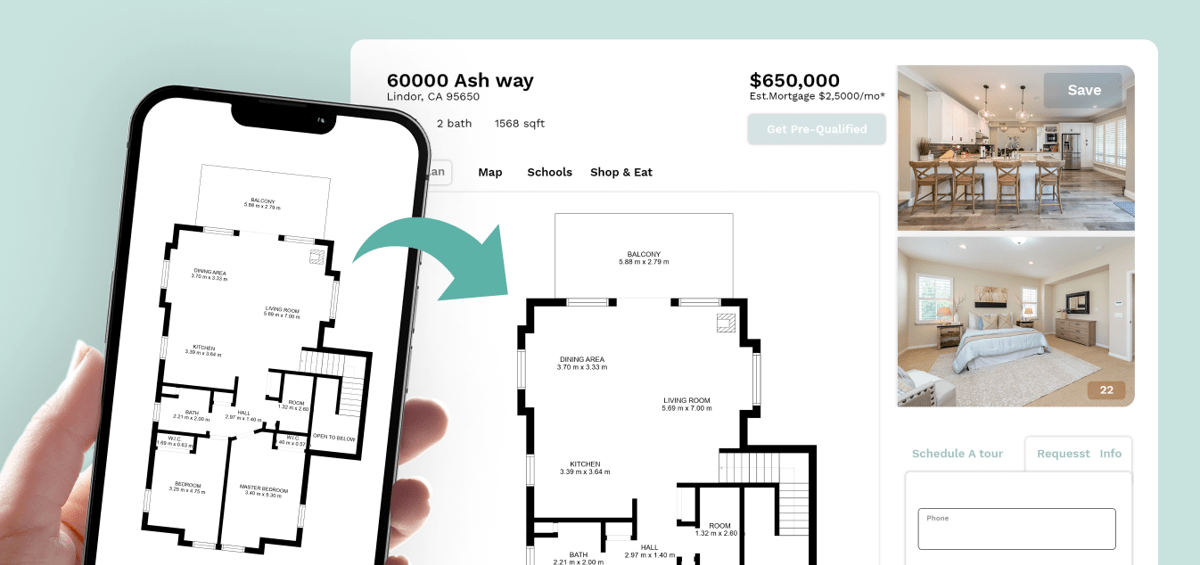The CubiCasa App for iPhone, iPad, and Android allows users to scan a house in just 5 minutes with their smartphone. Our innovative AI solution instantly converts this scan into a detailed, accurate floor plan. You can also get CubiCasa Tour, an elegant interactive floor plan, from the same scan.
